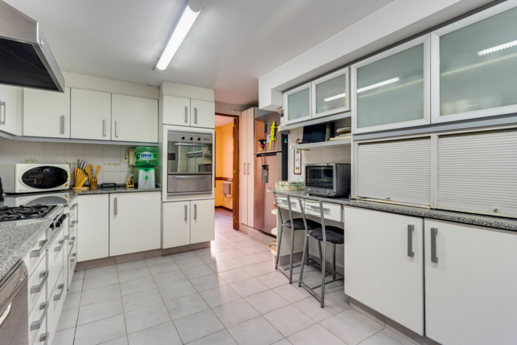 Pisos cerámicos en baños, cocina, comedor diario, lavadero y dependencia de servicio.