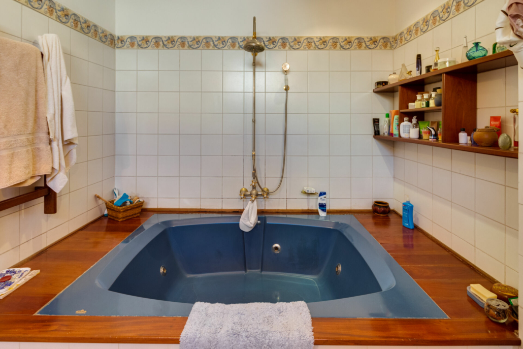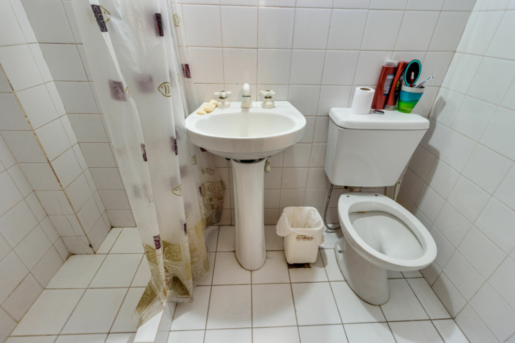 Baño con ducha con acceso desde la piscina