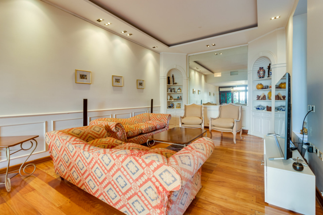 Dormitorio Principal en suite (al contrafrente): 4,77 x 3,69 + 2 vestidores de: 4,10 x 2,20 + Gran baño con jacuzzi de 3,57 x 2,42 y hall distribuidor para esta parte de 3,62 x 1,47
